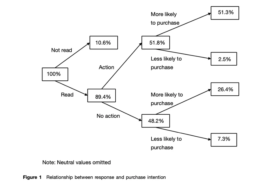 In the same paper, Rettie et al. found out that 89 percent of the messages were read, and 5 percent of the them were forwarded to friends. They also noted the inclusion of a Call-to-Action as being a driving force for eliciting a response. “For most of the campaigns (20 out of 26), respondents followed the specified call to action, with the most frequent response following the message directions” (Rettie et al., 2005).